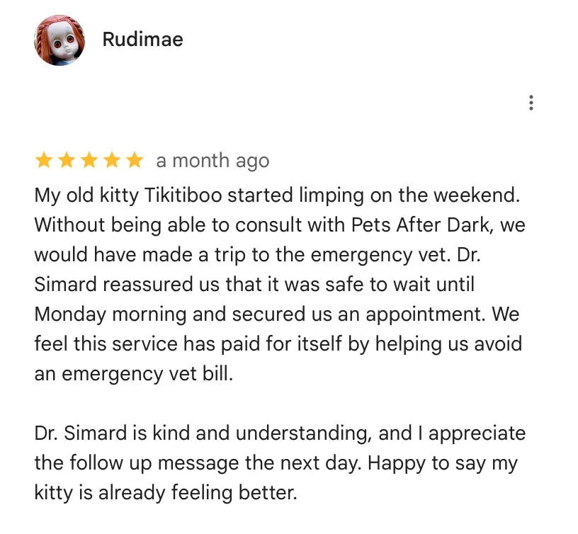 We encourage you to give Pets After Dark a try. You will never think about after-hours veterinary care the same.